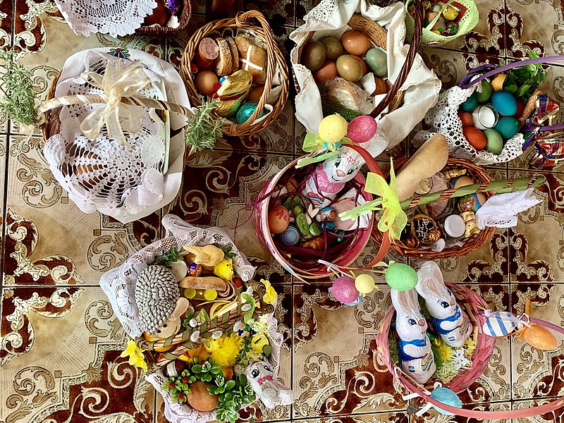 폴란드에서 "święconka"의 전통은 빵, 소금, 고기, 계란 및 기타 품목을 포함하여 성토요일에 축복을 받기 위해 교회에 음식 바구니를 가져오는 것과 관련이 있습니다.