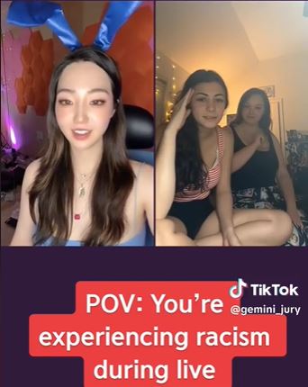 이에 주리는 한국어로 "안녕"이라고 말하며 방송을 종료하려 했지만, 미국인 여성 중 한 명이 양쪽 눈꼬리를 손으로 찢는 행동을 했습니다. 이는 스페인 및 스페인 문화권에서 빈번히 일어나는 동양인에 대한 대표적인 인종차별 행위로 알려져 있습니다.