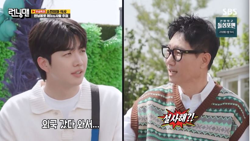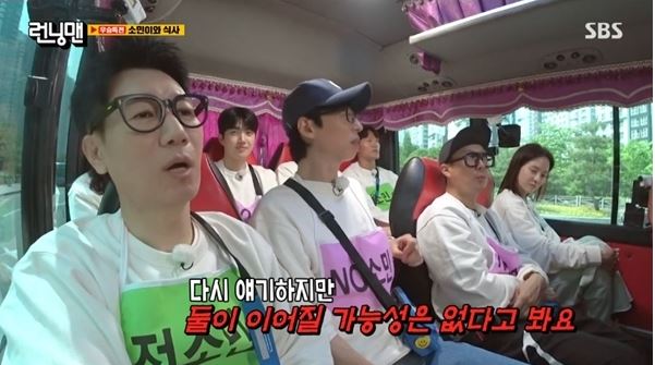 차 안에서의 이야기 중에 강훈은 전소민 옆자리에 앉게 되었고, 김종국은 강훈을 칭찬했으며 전소민은 강훈의 따뜻함과 외모에 대해 언급했습니다. 지석진은 전소민의 연애를 응원하며 조세호와의 만남에는 반대 의견을 표현했습니다.