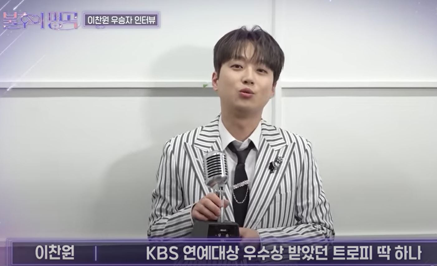 가수 이찬원이 '불후의 명곡' MC로 활약하면서 본업에서도 천재적인 재능을 보여주며 첫 번째 우승 트로피를 차지했습니다.