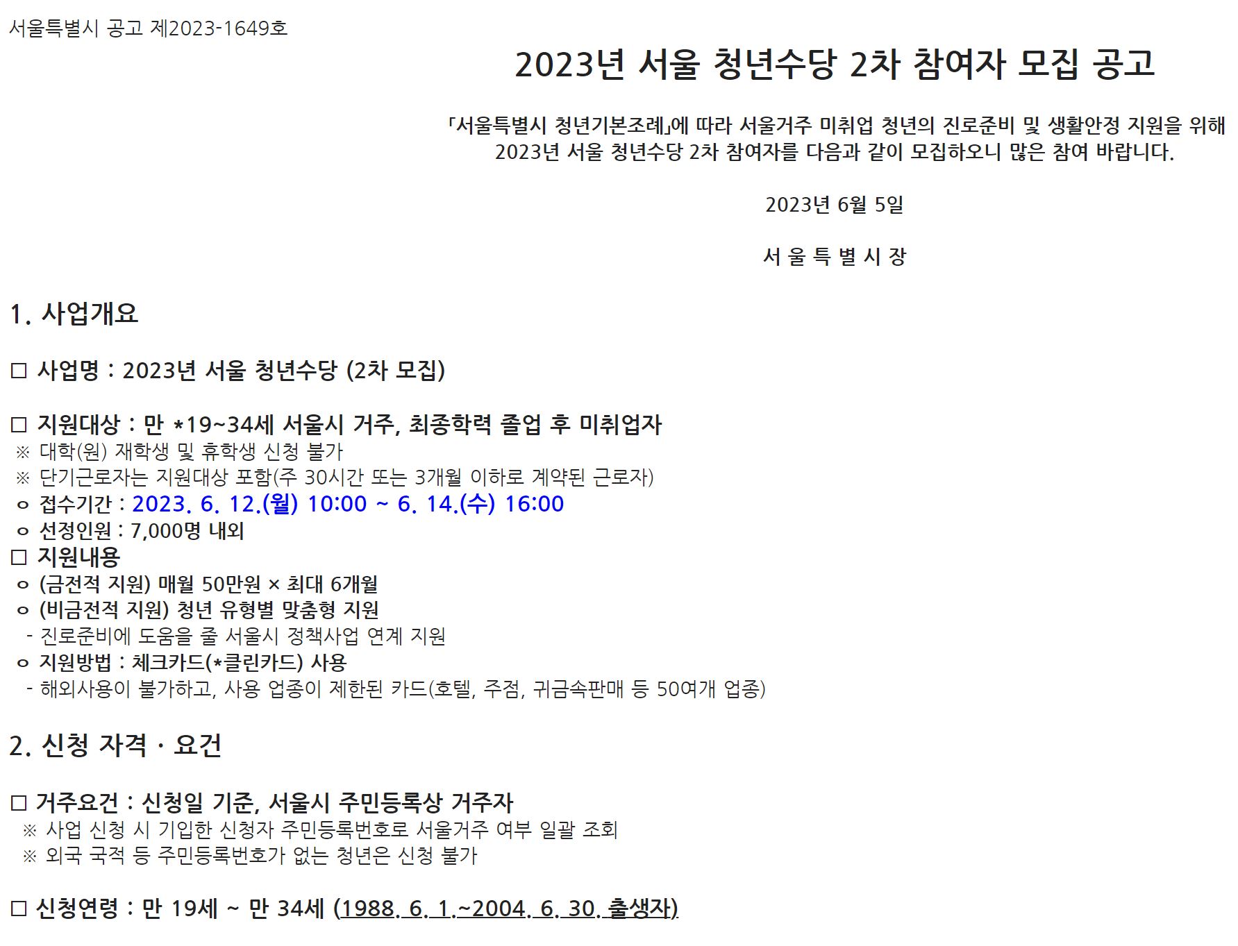 서울시는 4일, 청년 1인당 최대 300만원을 주는 '청년수당' 2차 참여자 7000명을 모집한다고 밝혔습니다. 서울 청년수당은 만 19~34세 미취업 및 단기근로 청년을 대상으로 월 50만원씩 최대 6개월 동안 활동 지원금을 지급하는 제도입니다.