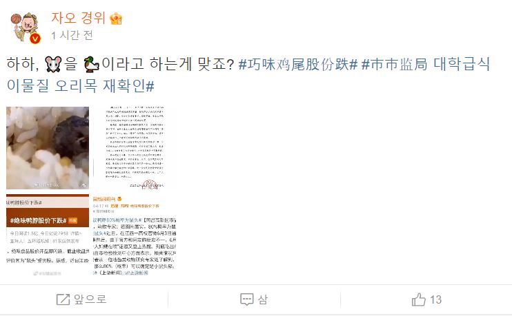 하지만 중국 누리꾼들은 이 결론을 믿지 않고 당국의 일방적인 결론을 조롱하는 풍자적인 게시물을 작성하고 있습니다.