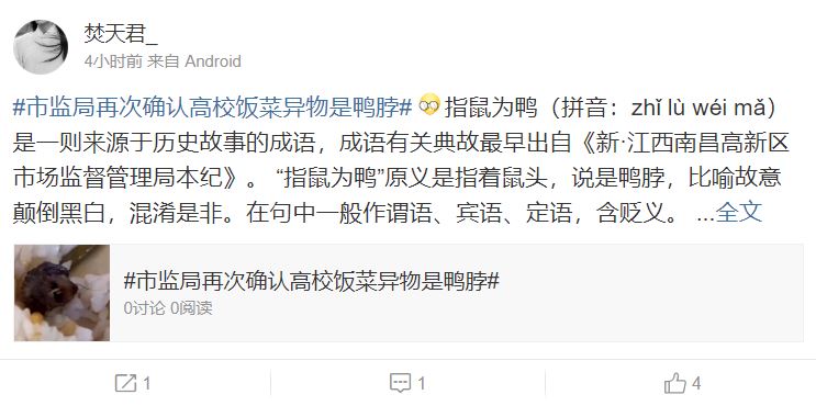 @vistaweek 江西高校食堂吃出老鼠头?校方通报称异物为鸭脖,该校2年前就曾因“后厨进老鼠”被联合执法。#江西高校 ♬ 原声 - 点知天下