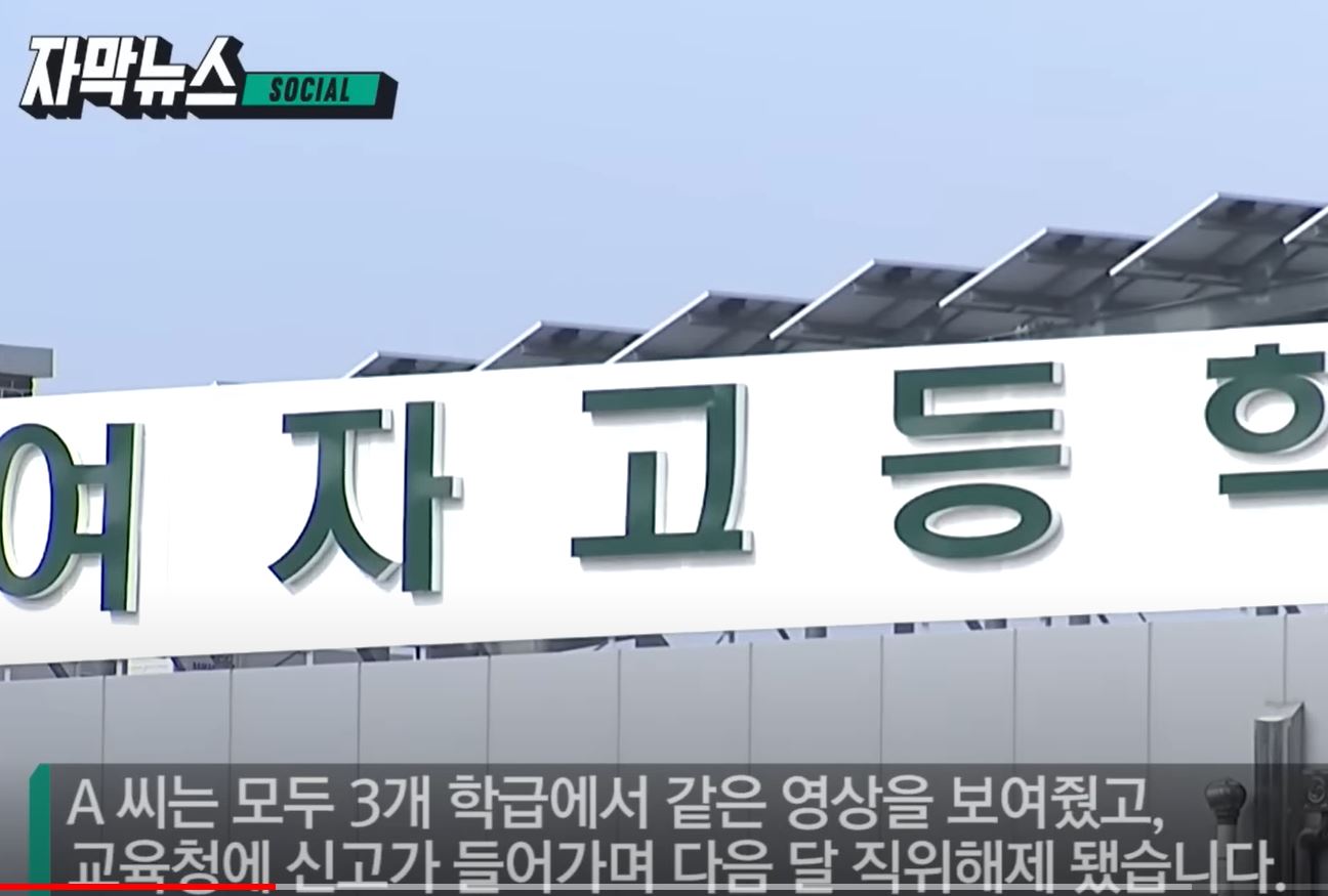 교육청은 중간고사가 끝난 4월 초에 해당 영상을 본 학생들을 대상으로 설문조사를 실시했고, 응답한 학생들 중 약 3분의 1이 "불쾌했다"고 답했습니다. 경찰의 수사가 개시된 후 A씨는 직위를 즉시 해제당했습니다.