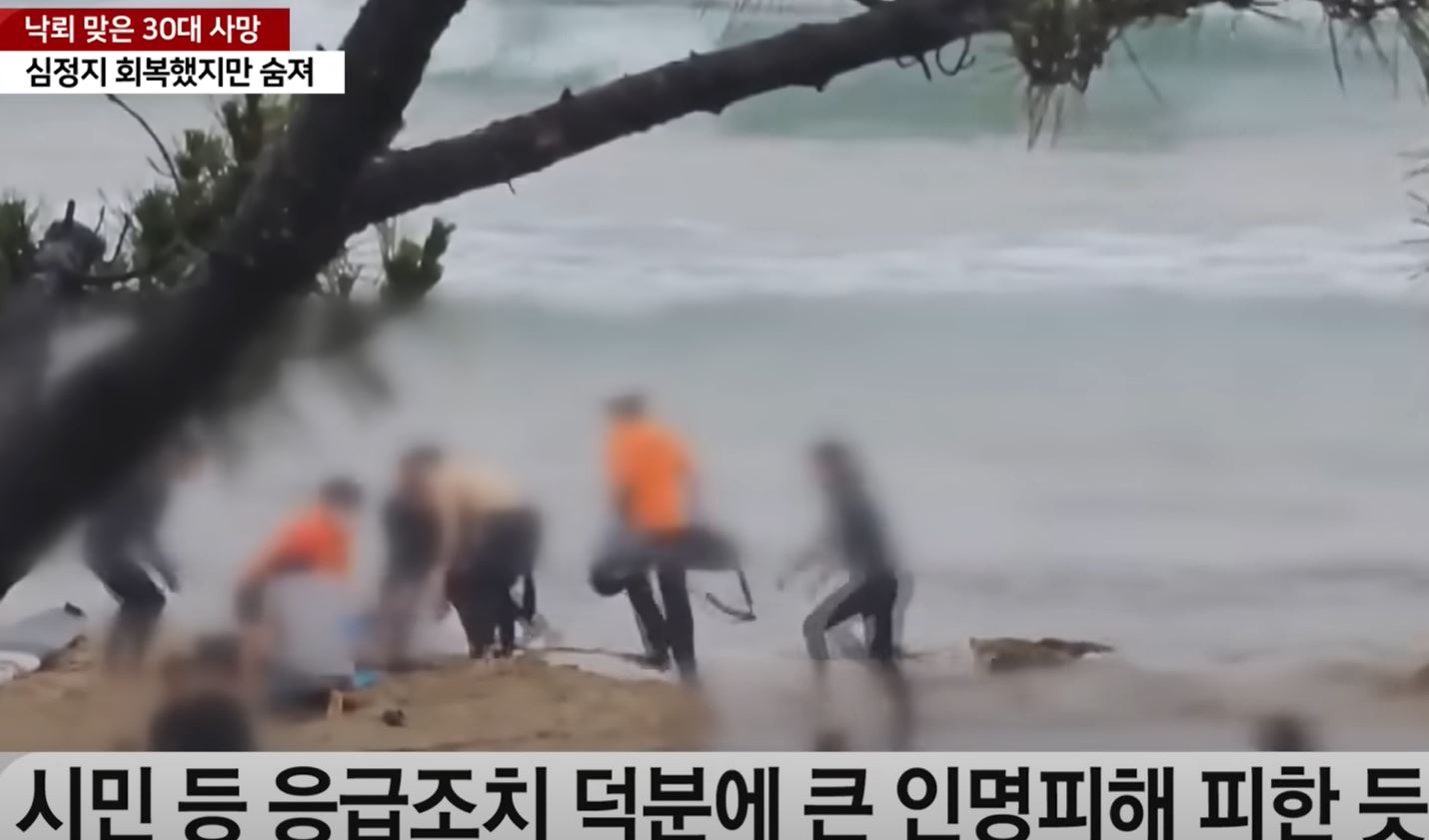 소방 당국은 "해변에서 벼락을 맞고 여러 명이 쓰러진 것"이라는 신고를 받고 출동했으며, 물에 휩쓸려가는 사람들을 구조했다고 밝혔습니다.