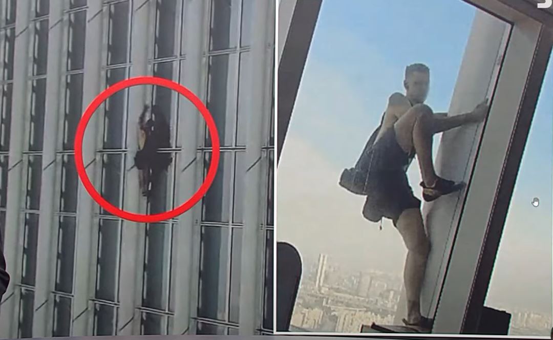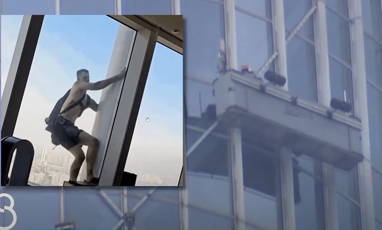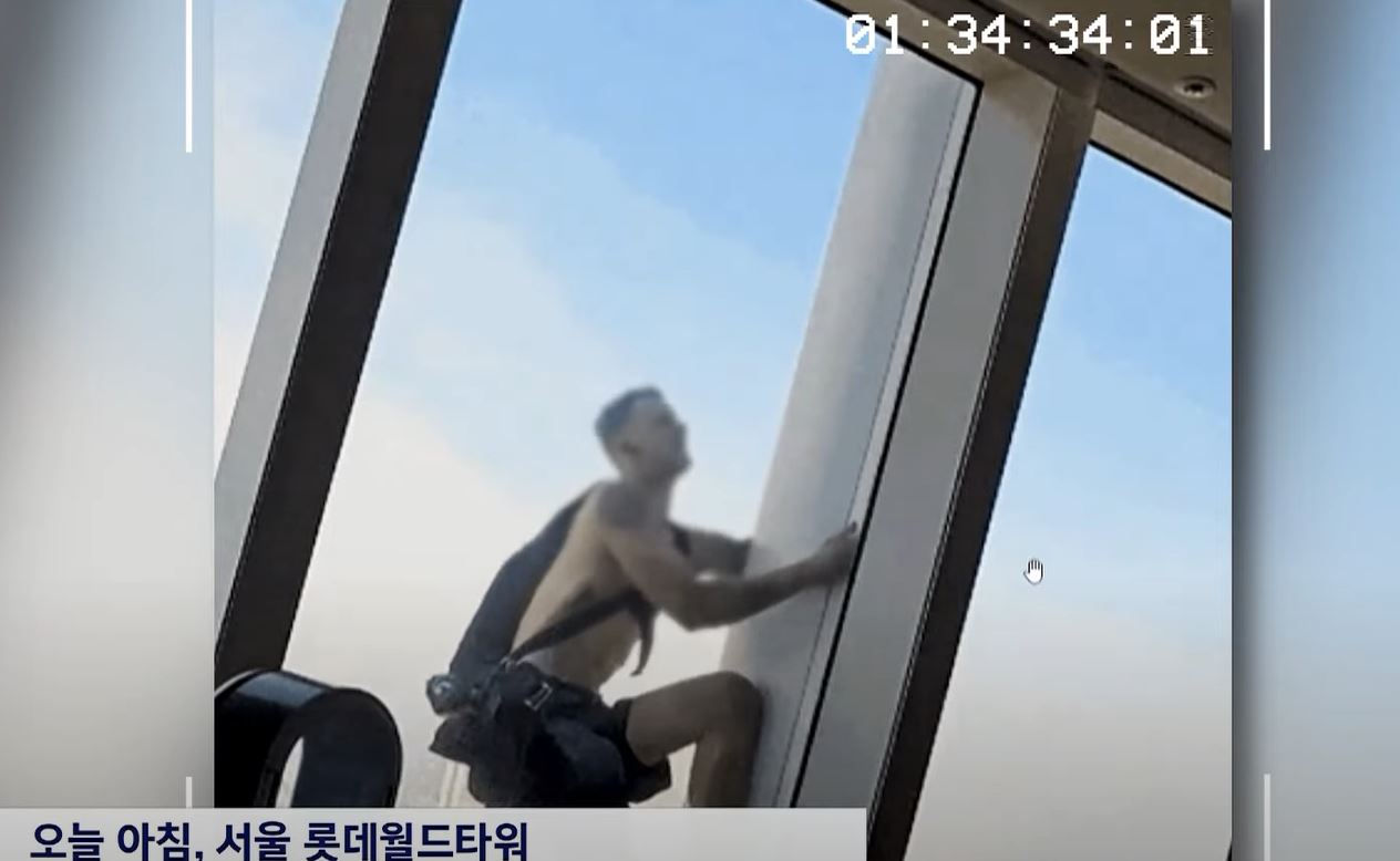 555미터 높이의 서울 롯데월드타워의 외벽에 스파이더맨이 매달려 있다는 신고를 받고 출동한 소방 당국이 72층 높이의 타워 외벽에서 등반 중이던 한 외국인을 구조해 경찰에 인계했습니다.