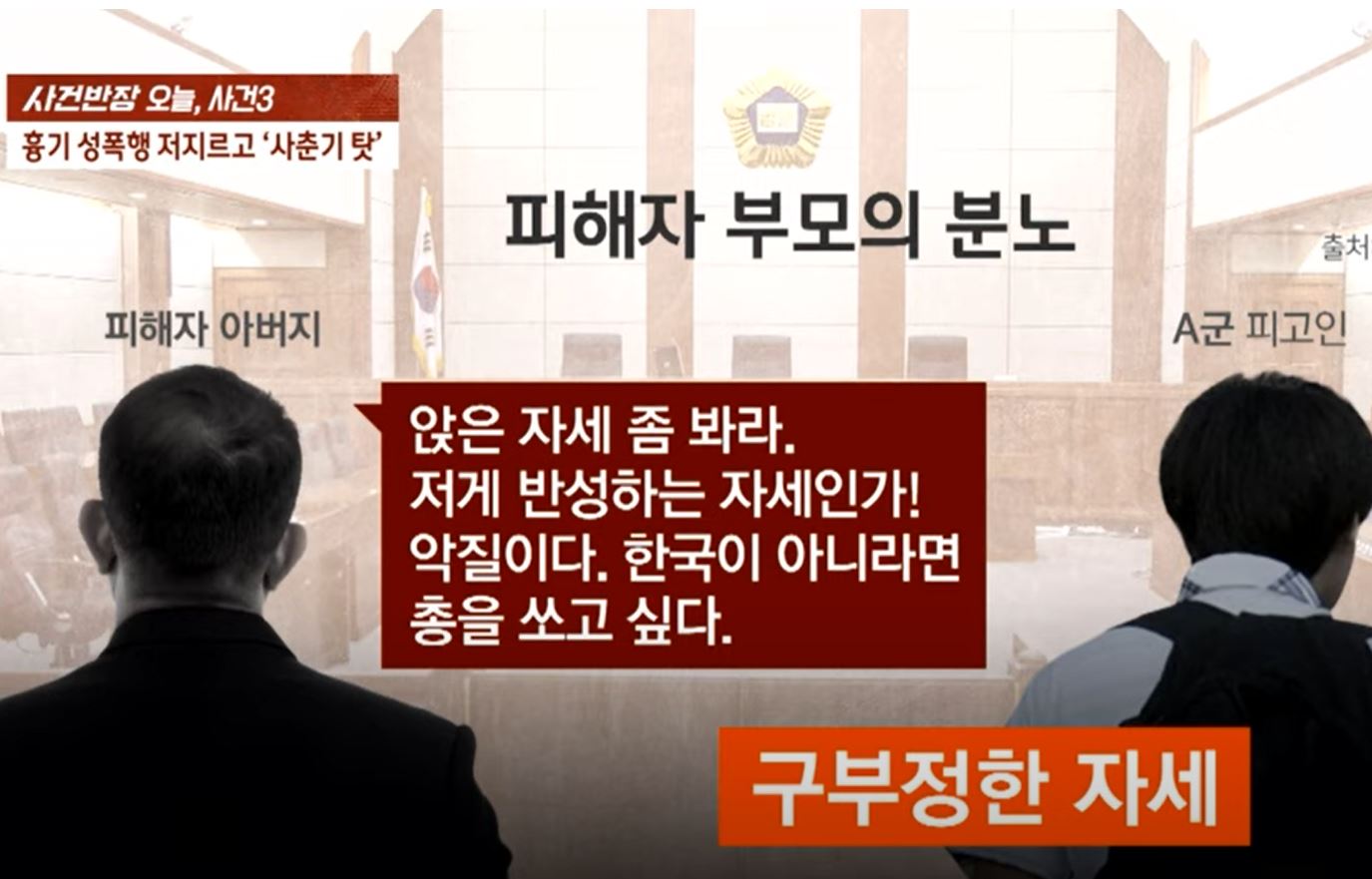 야구 선수가 꿈이라 평소 야구 동영상을 즐겨보다 이런 끔찍한 범죄를 저지르게 되지는 않았는지, 자기 아들의 꿈만 중요하고 피해자의 미래는 중요하지 않은지 법원의 현명한 판단을 기다려 봅니다.
